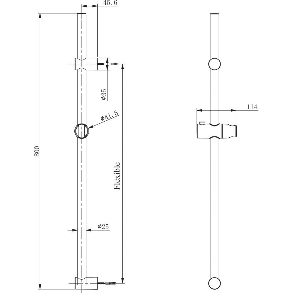 • Duschstång, 80 cm. Flexibelt övre väggfäste, använd gamla borrhålen! C/C 500-765