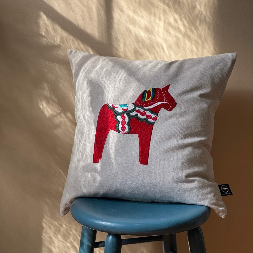 kuddfodral med dalahäst återvunnet material kuddfodral med dalahäst återvunnet material