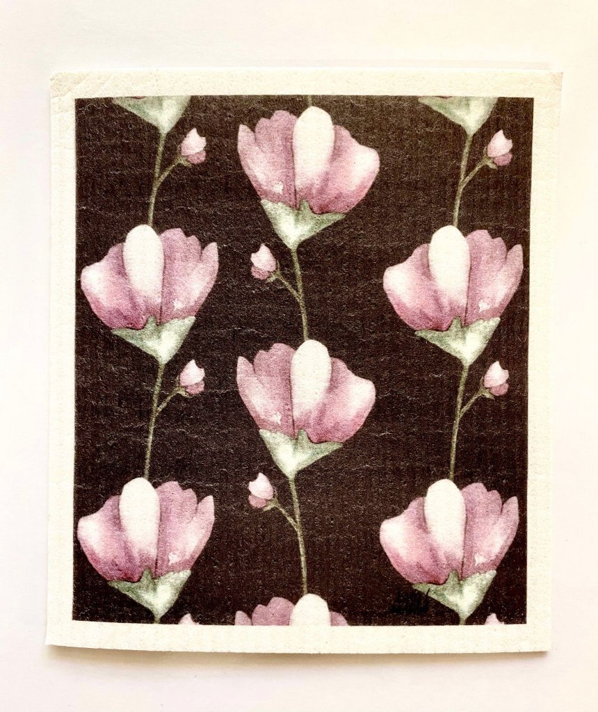 • Svart bakgrund med motiv av lila/rosa krokusar