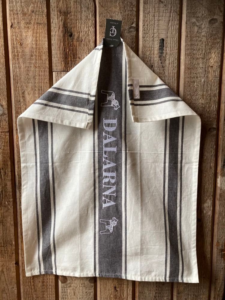 kökshandduk dalarna grå vit kökshandduk med Dalahästar och dalarna mörkgrå kökshandduk med Dalahästar och dalarna mörkgrå närbild kökshandduk med Dalahästar och dalarna mörkgrå logga kökshandduk med Dalahästar och dalarna mörkgrå inof