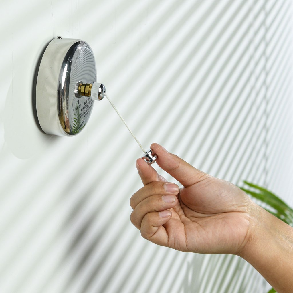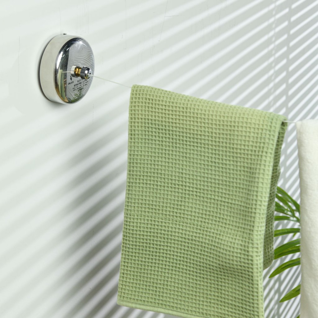Torklina som spar plats, dra ut linan och fäst den på andra sidan väggen!