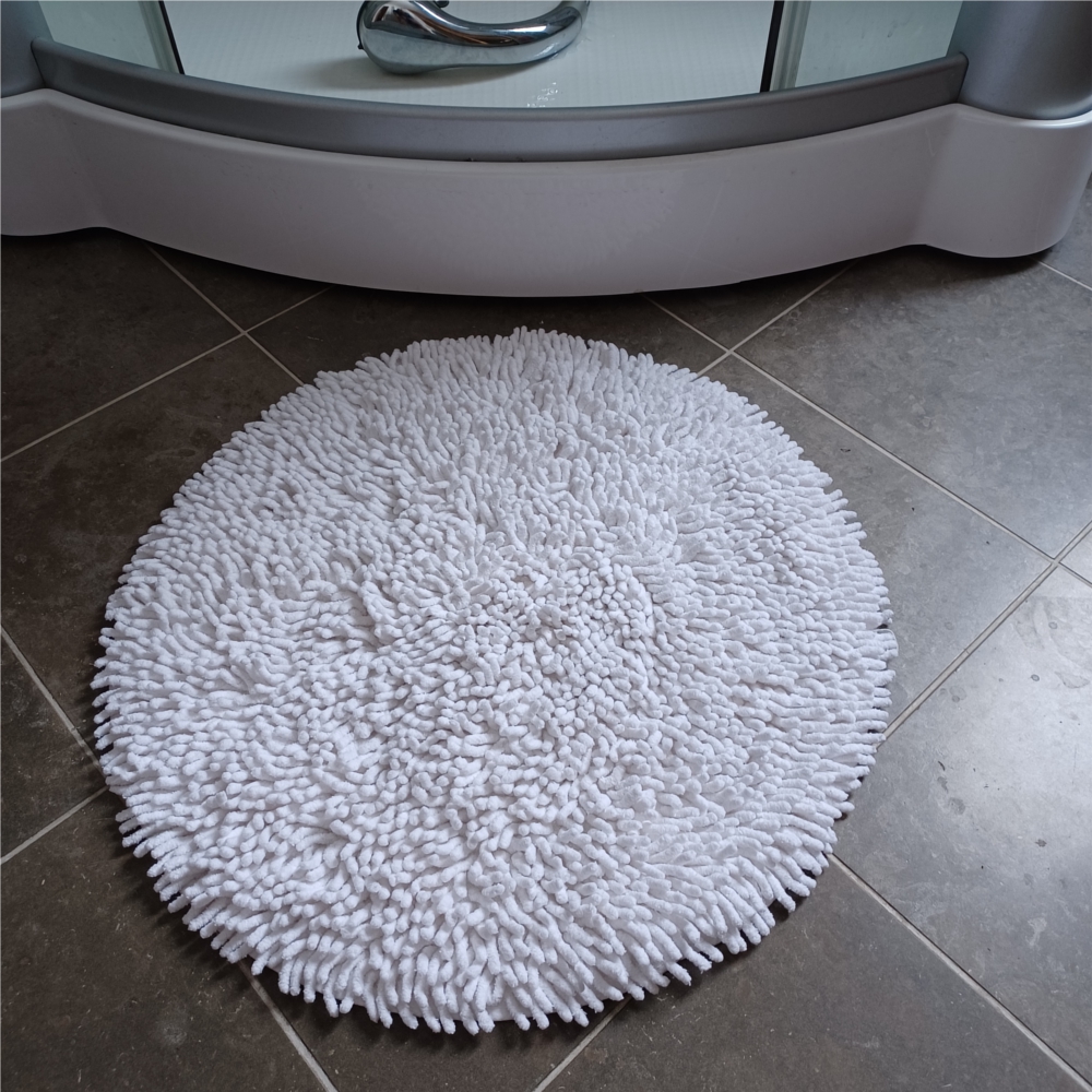 En riktigt tjock och härlig badrumsmatta med de små karaktäristiska korvarna av mjuk bomullschenille!
