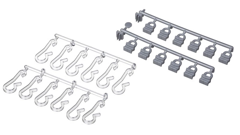 • Färg: silver (grå) dragklossar, transparenta krokar