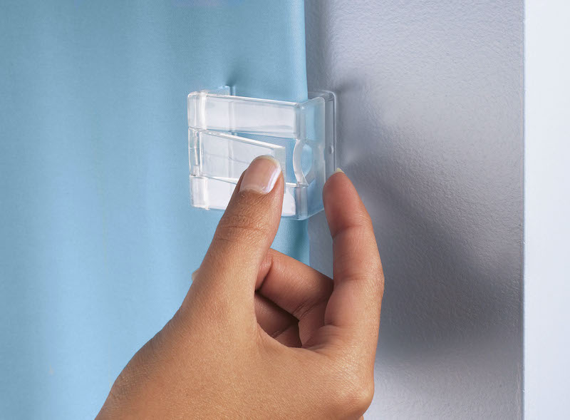 Håll fast ditt duschdraperi med dessa klämmor! Fästs med självhäftande tejp och håller draperiet från att åka in i duschen.